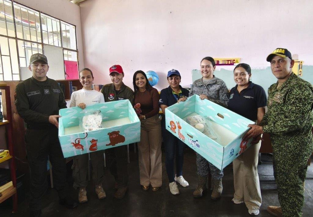 Fruto Bendito, AstraZeneca y la Fuerza Aeroespacial Colombiana están entregando cunas para recién nacidos en 15 ciudades del país, como parte de sus misiones de Acción Integral. Estas cunas, inspiradas en la tradición finlandesa de las baby boxes, están fabricadas en cartón corrugado certificado FSC, tintas orgánicas y materiales seguros para los bebés, lo que las hace livianas, resistentes, biodegradables y aptas para promover el sueño seguro durante los primeros meses de vida.