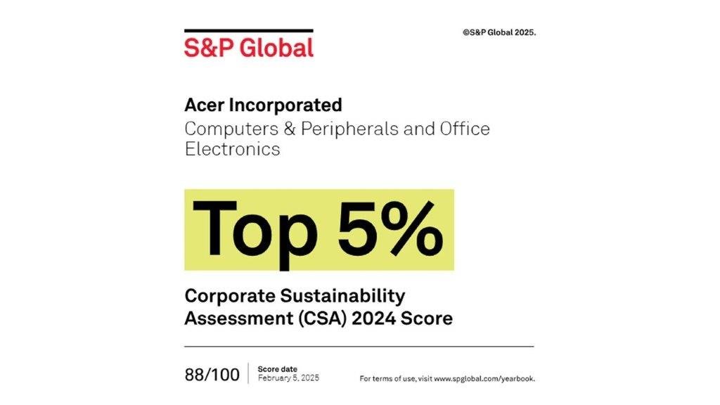 Acer se posiciona en el Top 5% de empresas en la Evaluación de Sostenibilidad de S&P Global