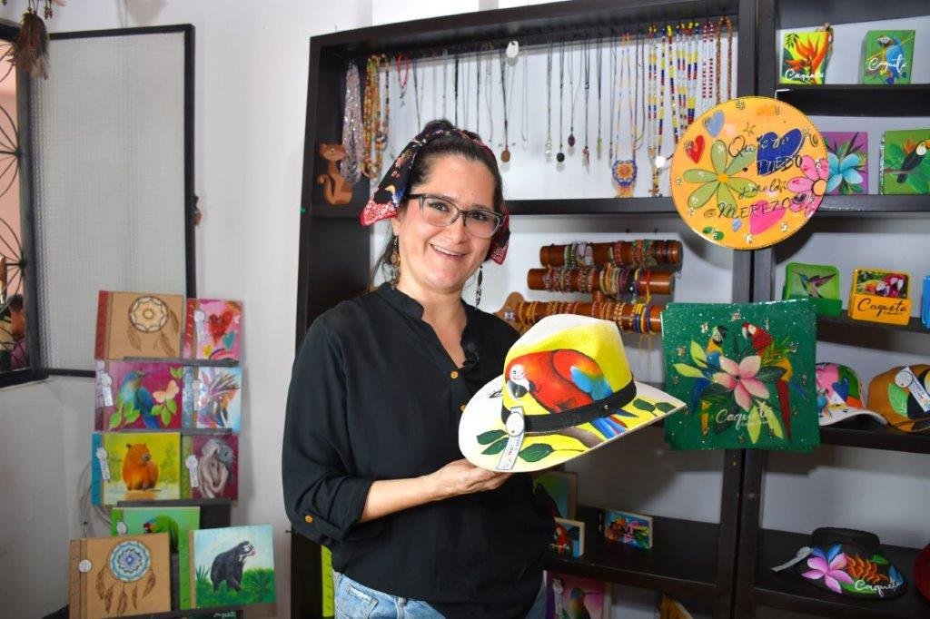 Inspirada en la naturaleza y la riqueza de su región (Caquetá), Claudia Paulina -madre soltera y jefe de hogar- comenzó desde 2019 con el apoyo de un crédito de Bancamía, a fabricar artesanías que exaltan la biodiversidad y el valor de la cultura amazónica. Entre los productos que comenzaron a salir de su taller (Vaju Artesanías) se cuentan algunos como, por ejemplo, cuadernos, collares, camisas, sombreros, entre otros. Incluso, pensando en la sostenibilidad de su emprendimiento, ha hecho uso de materiales reciclados y amigables con el entorno.