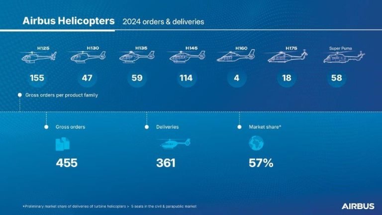 Airbus ve crecimiento continuo de las ventas de helicópteros en 2024 febrero 1, 2025 • Yulder Jiménez Airbus Helicopters registró 455 pedidos brutos (netos: 450) en 2024, destacando un crecimiento constante del mercado con...