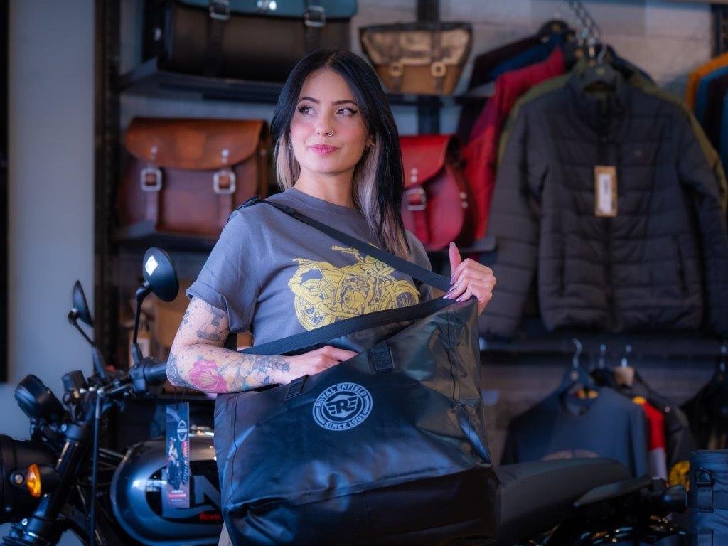 Las marcas especializadas en motos, como Royal Enfield, han entendido esta fusión entre funcionalidad y estética. Su línea de ropa y accesorios no solo protege, también comunica un estilo de vida. Chaquetas de protección, jeans resistentes y camisetas con carácter hacen parte de un armario que se mueve entre la calle y la carretera. Ejemplo de ello es la chaqueta Royal Enfield Streetwind Eco, fabricada con aproximadamente 75 botellas plásticas recicladas por unidad, que mezcla conciencia ambiental con alto desempeño.