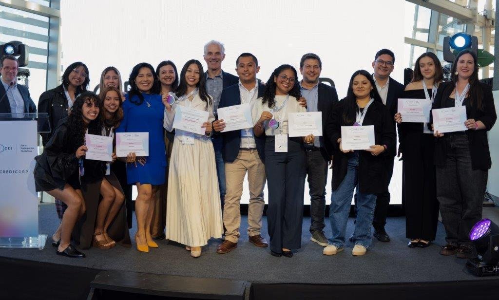 Credicorp, principal holding financiero del Perú con operaciones en Colombia, Chile, Bolivia y Panamá, cerró la cuarta edición de VOCES, la iniciativa que este año reunió a miles de jóvenes latinoamericanos decididos a reactivar la confianza entre ciudadanos e instituciones clave para el desarrollo de la región. En una ceremonia de premiación realizada en Santiago de Chile, fueron reconocidos tres proyectos que destacaron por su potencial para transformar la manera en que los ciudadanos se involucran en los asuntos de sus comunidades: CiudadanIA (Colombia), Nuestra Voz (Perú) y VECI (Panamá).