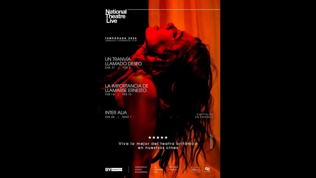 Con dos nuevas producciones y el regreso de una de las obras más impactantes que se han presentado en las pantallas de Colombia, National Theatre Live vuelve en 2026. Desde el 31 de enero al 1 de marzo, los amantes del teatro británico podrán volver a disfrutar de la inquietante Un tranvía llamado deseo, en la versión más exitosa del Young Vic de Londres; La importancia de llamarse Ernesto, en una glamurosa, divertida y deliciosamente actuada reinterpretación del clásico de Oscar Wilde, e Inter Alia, un poderoso drama del mismo equipo creativo de la exitosa Prima Facie, que presenta una nueva mirada incisiva al mundo judicial. Tres obras aclamadas con las que Cine Colombia abre su cartelera de contenido alternativo 2026.