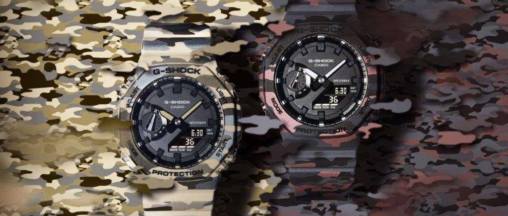 Accesorios como el GA-2100 en su versión camuflada se integran de manera natural a estas tendencias, convirtiéndose en piezas clave dentro del look urbano. Su diseño octogonal, delgado y resistente, se combina con un acabado que reinterpreta el camuflado desde una perspectiva contemporánea, manteniendo el equilibrio entre funcionalidad y estilo.