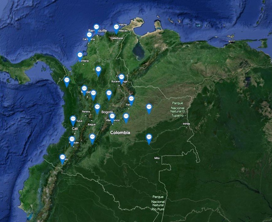 MAPA DE ELECTROLINERAS CHEVROLET EN COLOMBIA