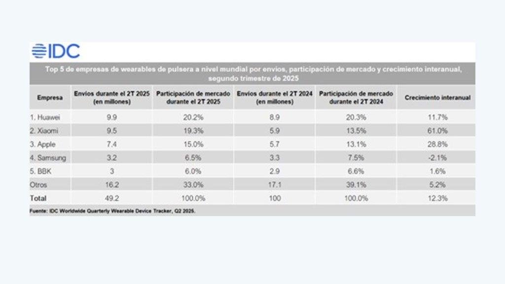HUAWEI consolida su liderazgo en el mercado global de dispositivos wearables al alcanzar una participación del 20,2 % en el segundo trimestre de 2025, según el más reciente informe de IDC, firma de análisis y referente de la industria. Con este resultado, la compañía se posiciona por segundo trimestre consecutivo en el primer lugar a nivel mundial.