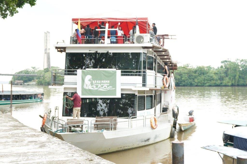 La “Yaku Mama” —que en lengua kichwa significa “Madre Agua”— zarpó el pasado 16 de octubre desde El Coca, Ecuador, con el propósito de reivindicar el papel de los pueblos indígenas como guardianes de la Amazonía y denunciar los impactos del extractivismo petrolero, la minería ilegal y la deforestación que devastan el bosque tropical.