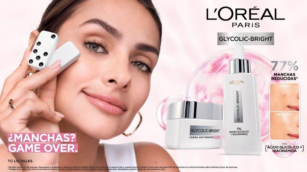 La línea Glycolic Bright recién lanzada por L´Oréal Paris ha demostrado una reducción de hasta un 77% en las manchas de la piel gracias a su fórmula con ácido glicólico y niacinamida, así como al mejoramiento del tono y la luminosidad de la piel, elementos esenciales para una piel saludable y restaurada.