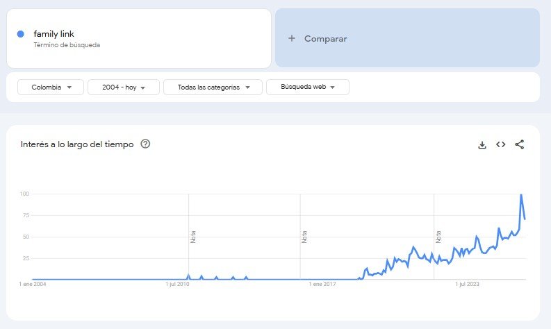 Gráfico 1. Así se reflejó el crecimiento del término de búsqueda “family link” en Colombia durante los últimos años.